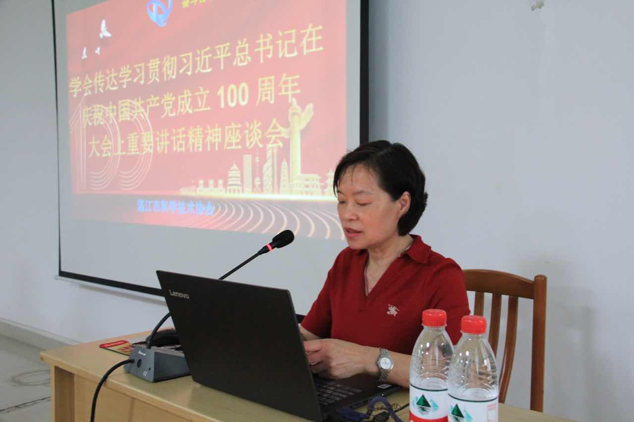 此次会议,市科协分别邀请湛江市海外青年留学会秘书长毛晓戈、湛江市医学会副秘书长朱明、湛江市计算机学会青少年科普中心主任张莹、湛江市船东协会秘书长王海宏分别代表所属学会,联系学会职责和工作实际,就学习习近平总书记在庆祝中国共产党成立100 周年大会上重要讲话精神做了精彩的交流发言。特别是湛江市医学会副秘书长朱明题为《切实将学习成果转化为解决人民群众看病就医“急难愁盼”问题的实际行动》的发言,从习总书记以人民为中心的发展思想入题,从湛江市正在加快建设省域副中心城市、打造现代化沿海经济带重要发展极入手,结合医学会开展“我为群众办实事”、紧急组织医护人员奔赴吴川市抗击新冠疫情、加快建立市强、县优、镇活、村实的优质高效的整合型医疗卫生服务体系思路,进行了深入细致的剖析解读,听了令人倍受鼓舞。