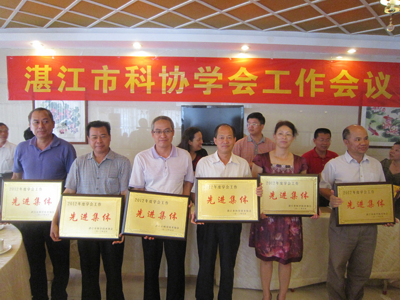 郭向明副主席宣读《关于表彰湛江市科协2012年度学会工作先进集体和先进工作者的决定》,其中,8个学会获“2012年度学会工作先进集体”称号,12人获“2012年度学会先进工作者”称号。