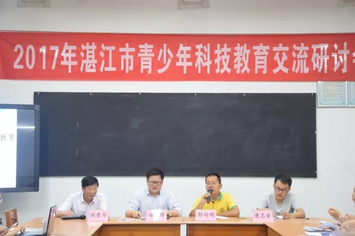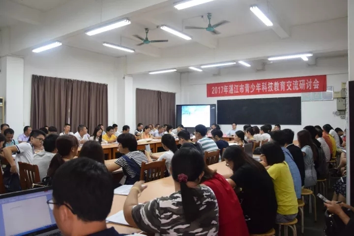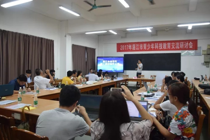 为贯彻落实《湛江市全民科学素质行动计划纲要实施方案(2016—2020年)》,推动全市青少年科技教育工作的发展。2017年9月26日上午,2017年湛江市青少年科技教育研讨会在岭南师范学院物理楼403室举办。市科协副主席郭向明、市教育局副局长冯燕锋、岭南师范学院物理学院院长刘贵昂教授、优课优信基础业务平台运营经理唐志豪等领导嘉宾出席会议,来自全市各中小学60余名科教教师参加研讨会。