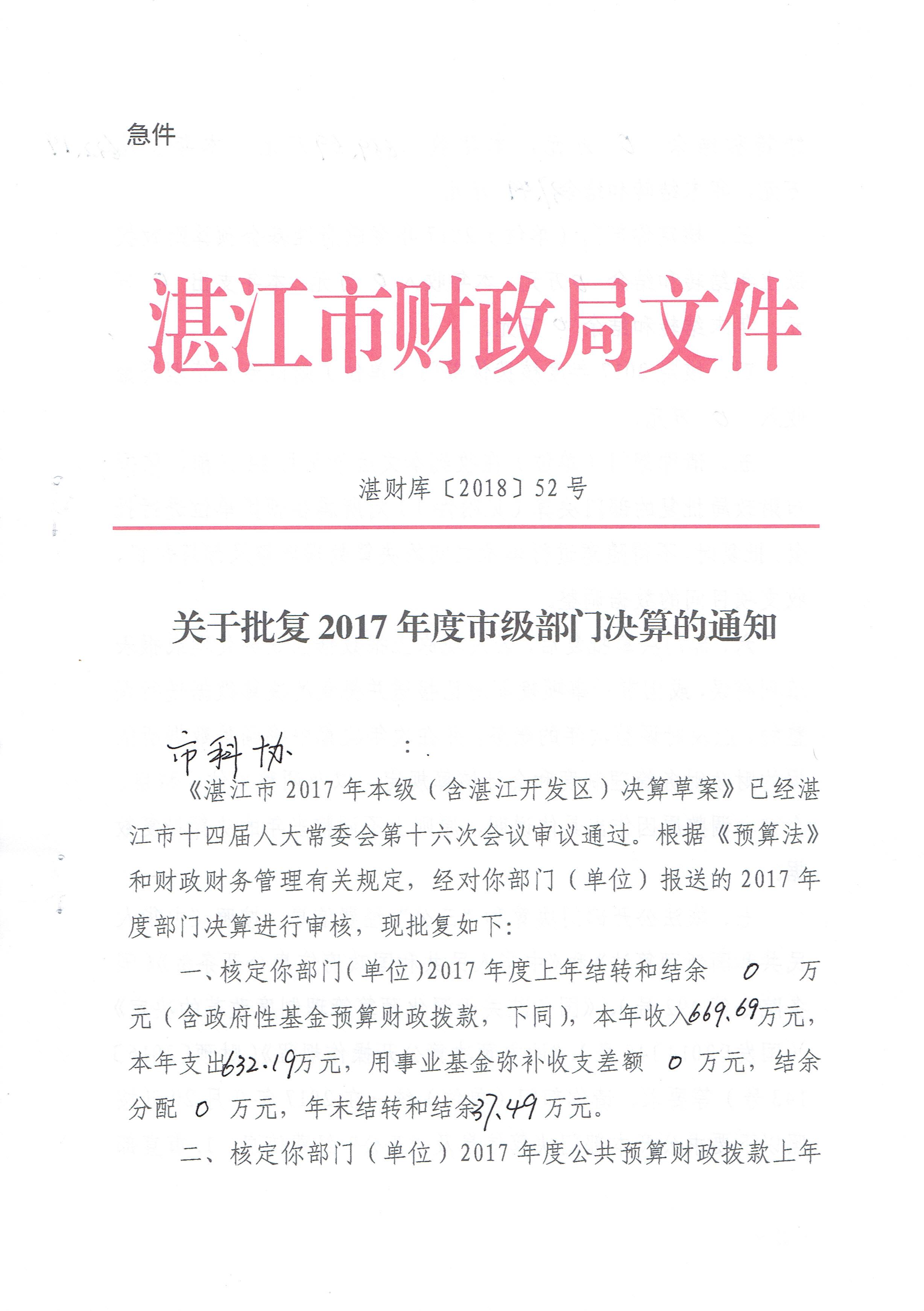 2017年度市级部门决算公开